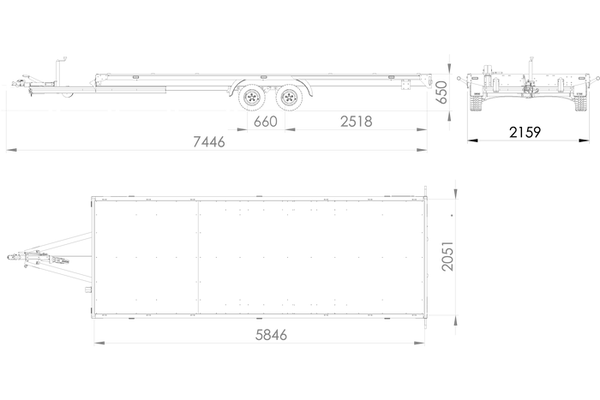 Remorque voiture à deux essieux UNITRAILER UNIPLAT 600 ALU – données techniques